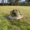 Original, unusual, unique even….possibly hand carved. Heavy stone piece in the form of a lotus lily sitting on an octagonal base. Although not a water feature, the base collects water giving that illusion. Great centre piece. Wonderful mossy patina and no damage.